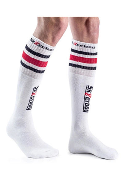 Sk8erboy-logo aan de voorkant met gekleurde strepen aan de bovenkant.