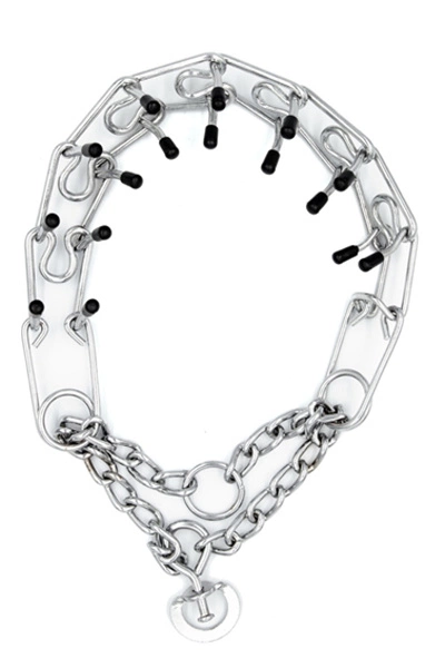 De kraag is gemaakt van acht verbindingsschakels die kunnen worden verwijderd om indien nodig een kleinere pasvorm te maken. Knijp gewoon in de ellebogen van een van de schakels om deze door de mazen te schuiven die hem op zijn plaats houden.