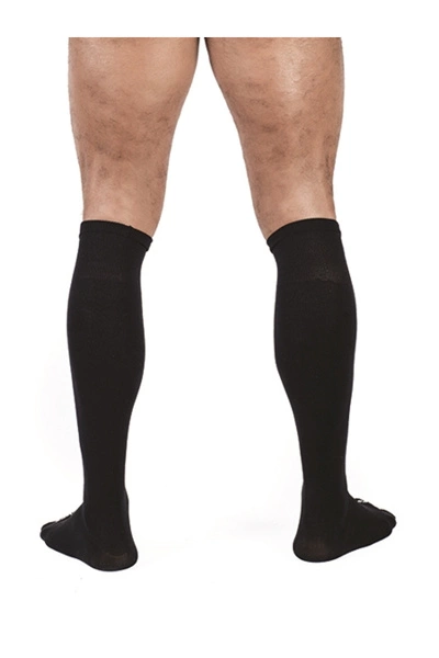 Voetbal sokken tot aan de knieën.
